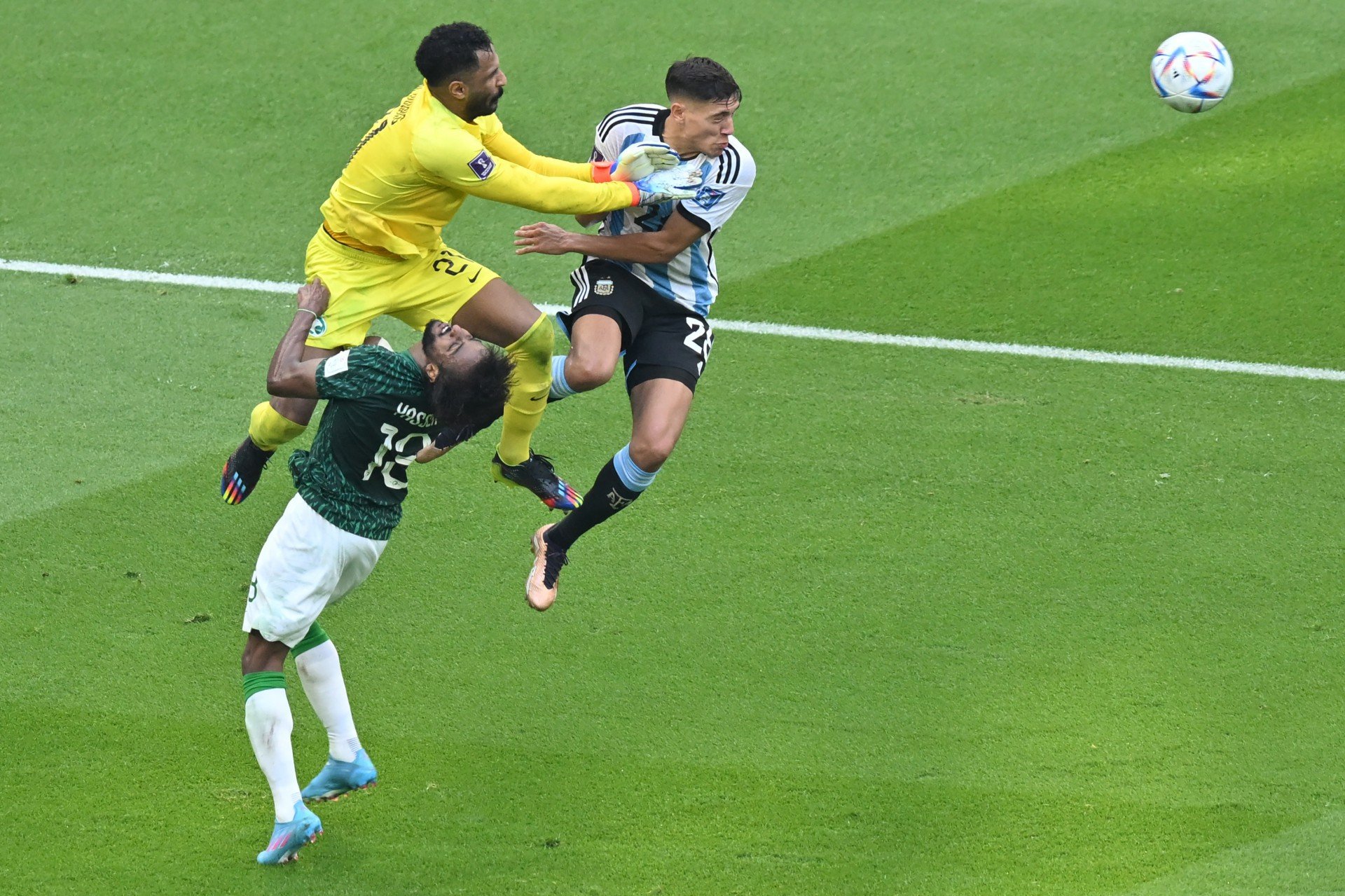 Após o choque com o companheiro, Al-Shahrani desmaiou no campo, deixando os sauditas apreensivos, principalmente o goleiro Al-Owais, cujo joelho bateu no rosto do lateral, que saiu do estádio diretamente para um hospital no Catar.