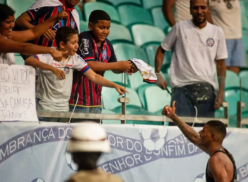 Marcos Victor em contato com a torcida do Bahia. Foto: Jhony Pinho/AGIF
