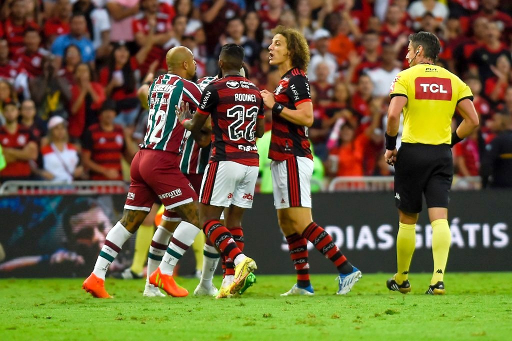 David Luiz e Felipe Melo discutindo durante Flamengo x Fluminense – Foto: Gilvan de Souza
