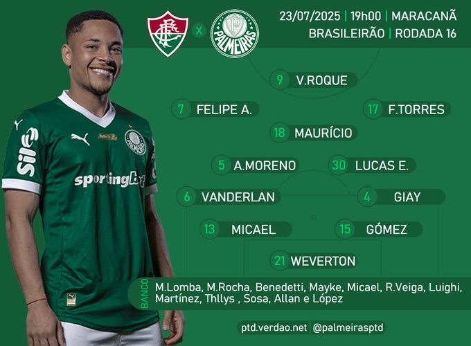[[{“value”:”Por Eduardo Luiz23/07/2025, 18h23 Ficha técnica: Fluminense: Fábio; Samuel Xavier, Thiago Silva, Ignácio, Freytes, Renê (Gabriel Fuentes); Hércules, Martinelli, Nonato; Canobbio e CanoTécnico: Renato Gaúcho Palmeiras: Weverton; Giay, Gómez, Micael e Vanderlan; Aníbal Moreno, Lucas Evangelista e Maurício; Facundo Torres, Felipe Anderson e Vitor RoqueTécnico: Abel Ferreira Local: Maracanã, Rio de Janeiro (SP)Data: 23/07/2025, quarta-feiraHorário: