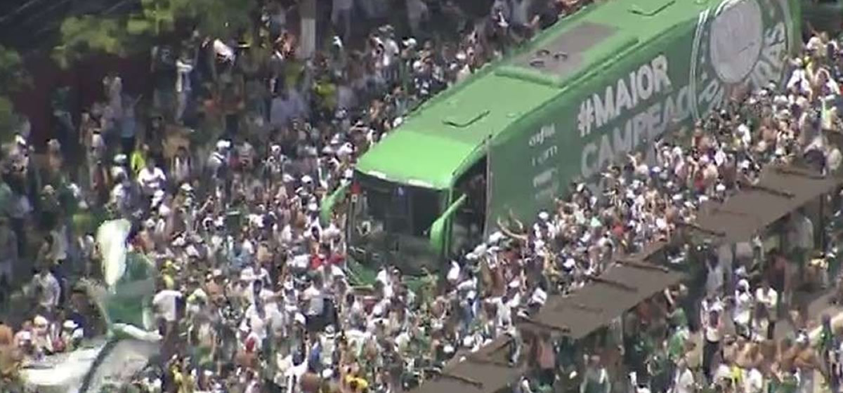 A torcida do Palmeiras fez um grande corredor antes do jogo de volta da final do Campeonato Paulista contra o Santos. Torcedores “escoltaram” o ônibus do Verdão da Academia de Futebol ao Allianz Parque, um trajeto de 2 km aproximadamente.