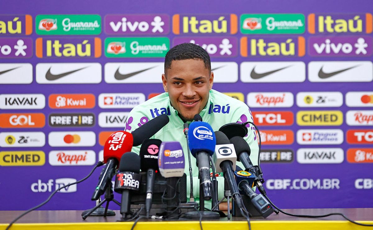 Nesta segunda-feira (20), Vítor Roque deu sua primeira entrevista coletiva como jogador da Seleção Brasileira. O atacante deu detalhes de como foi recebido pelos jogadores mais experientes e revelou o nervoso que vinha sentindo desde que foi convocado. Outro assunto tratado pelo atleta foi uma conversa que ele teve com Felipão antes de se apresentar. O treinador, no entanto, assumiu a postura de ‘homem de poucas palavras’.