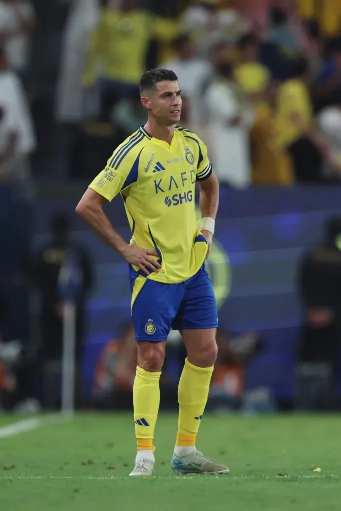 RIYADH, SAUDI ARABIA – MAY 07: Cristiano Ronaldo of Al Nassr looks dejected after Houssem Aouar of Al-Ittihad (not pictured) scores his team’s third goal during the Saudi Pro League match between Al Nassr and Al Ittihad at Al-Awwal Park on May 07, 2025 in Riyadh, Saudi Arabia. (Photo by Yasser Bakhsh/Getty Images)