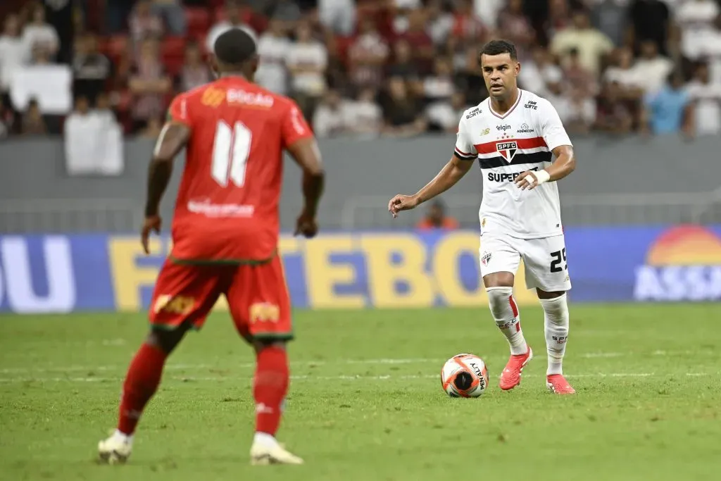 DF – BRASILIA – 13/02/2025 – PAULISTA 2025, SAO PAULO X VELO CLUBE – Pablo Maia jogador do Sao Paulo durante partida contra o Velo Clube no estadio Mane Garrincha pelo campeonato Paulista 2025. Foto: Mateus Bonomi/AGIF