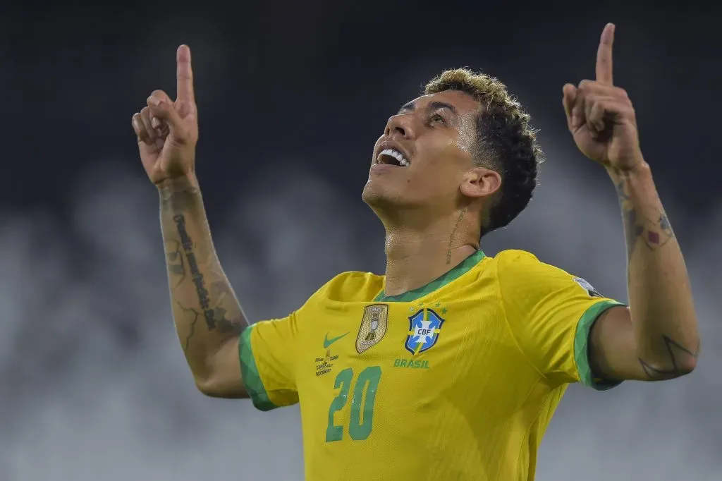 RJ – Rio de Janeiro – 23/06/2021 – COPA AMERICA 2021, BRASIL X COLOMBIA – Roberto Firmino jogador do Brasil comemora seu gol durante partida contra o Colombia no estadio Engenhao pelo campeonato Copa America 2021. Foto: Thiago Ribeiro/AGIF