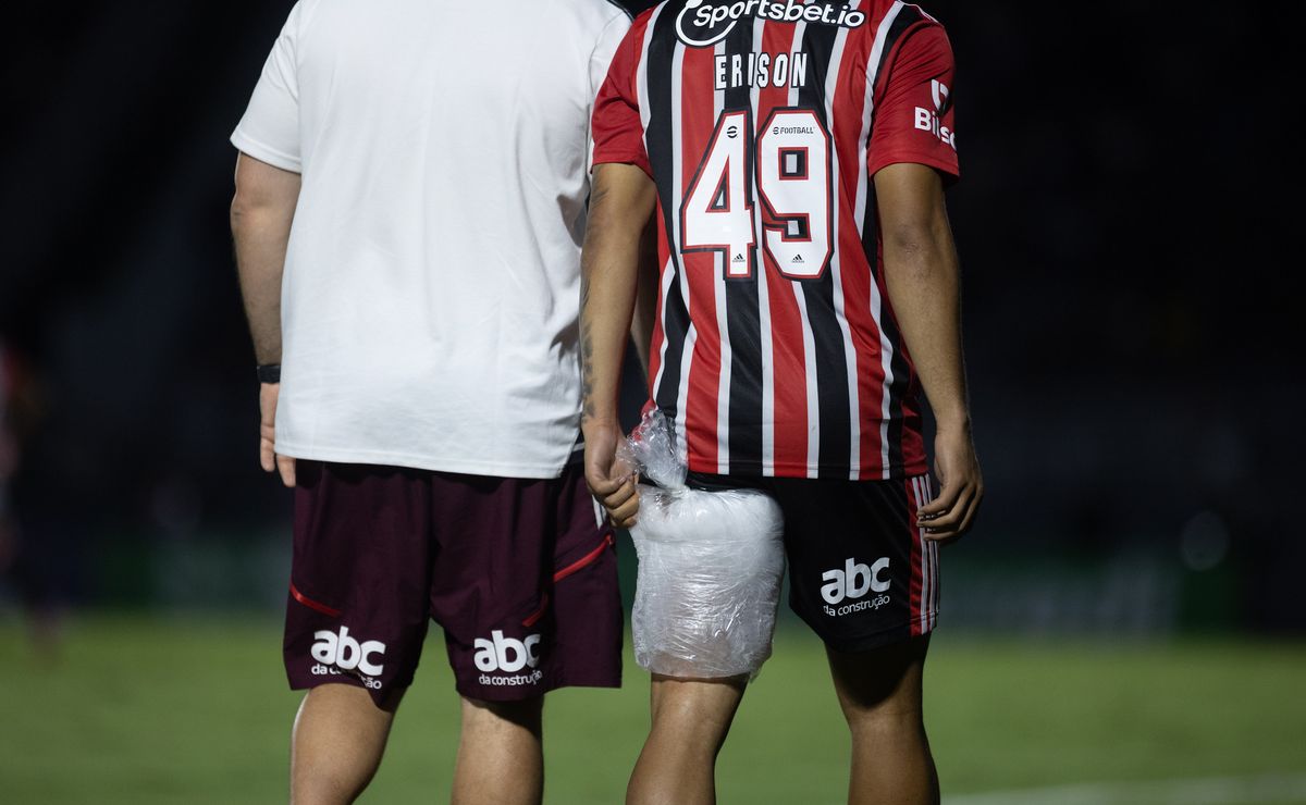 Recém-contratado pelo São Paulo, o centroavante deixou o gramado chorando ainda no primeiro tempo e precisará ser reavaliado na reapresentação do time, que está marcada para esta quinta (9), no CT da Barra Funda. Vale lembrar que essa foi a segunda partida de Erison, já que sua estreia ocorreu no último domingo (5), diante do Santo André. Aliás, o jogador de 23 anos já estava substituindo Calleri, que tem sido desfalque no Tricolor também por problemas físicos.