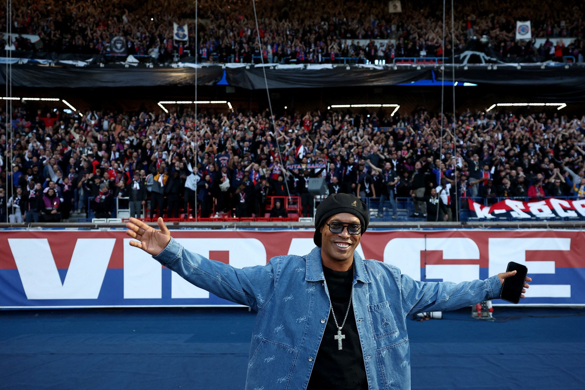 Rio – Ronaldinho Gaúcho deu mais um rolé, mas dessa vez não foi aleatório. Ídolo do Paris Saint-Germain, da França, e do Barcelona, da Espanha, o craque brasileiro compareceu ao estádio Parque dos Príncipes, na capital francesa, nesta quarta-feira (10), e acompanhou a partida válida pelas quartas de final da Liga dos Campeões da Europa.