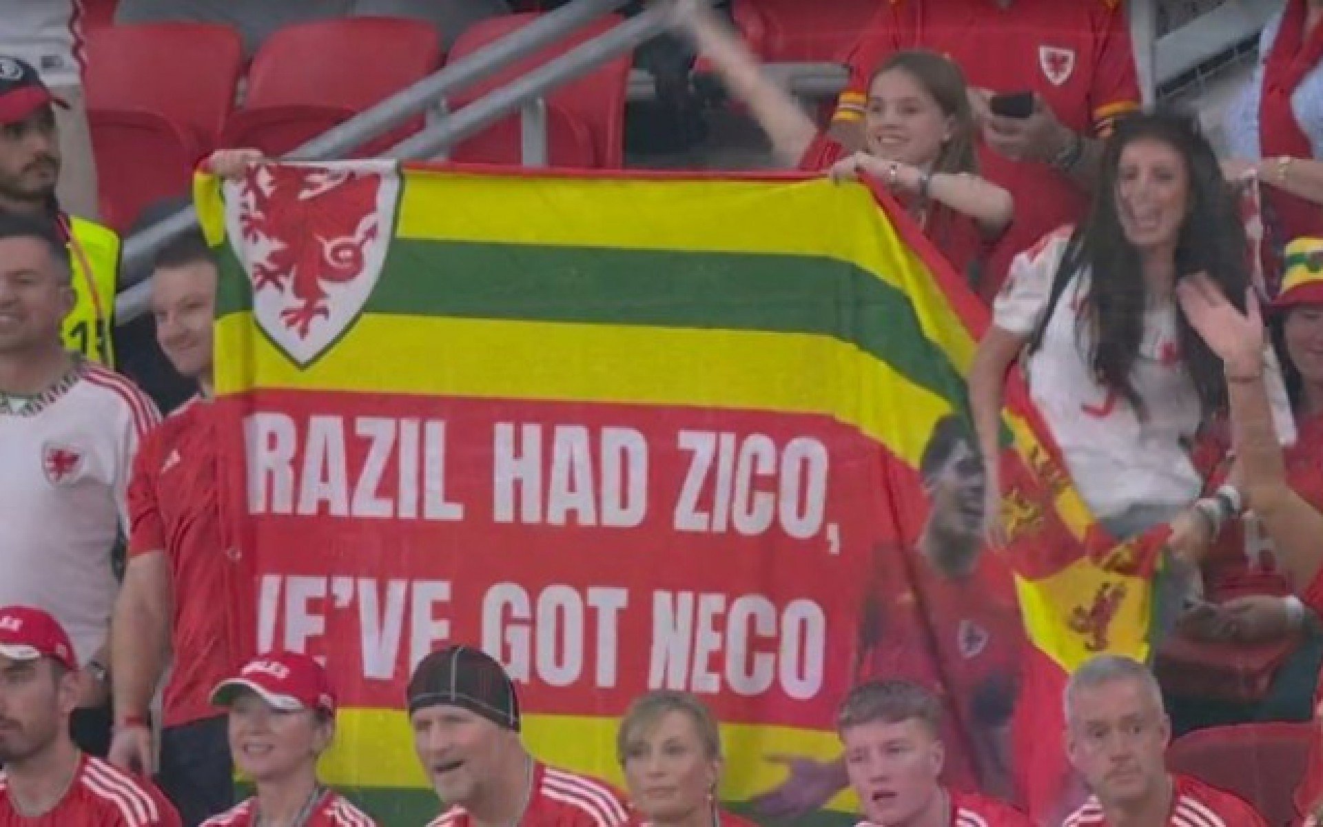 “O Brasil teve Zico, nós temos Neco”, dizia a faixa exposta pela torcida galesa.