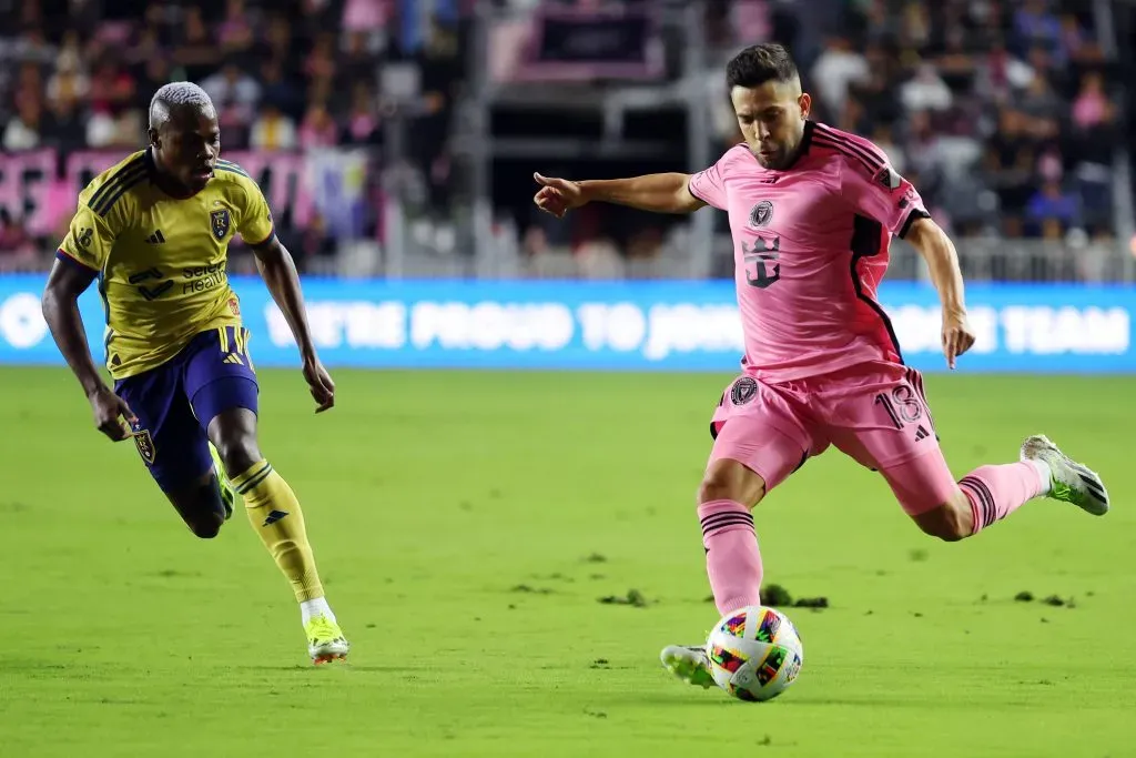 Jordi Alba marcado por Carlos Andrés Gómez em partida da MLS. (Photo by Megan Briggs/Getty Images)