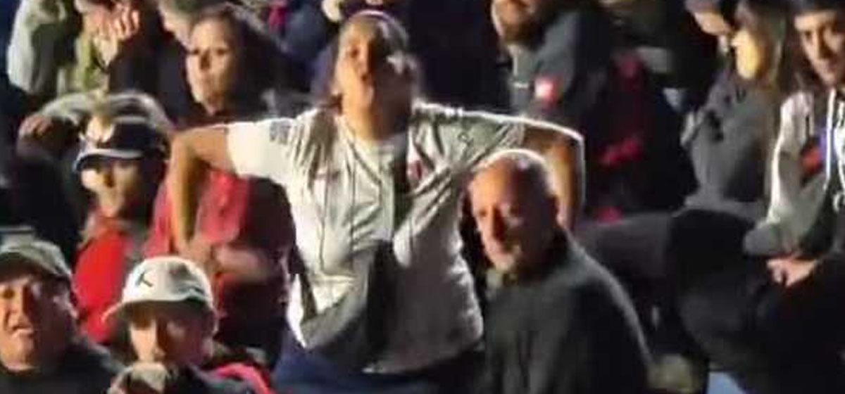 Vídeo que circula nas redes sociais mostra uma torcedora do San Lorenzo imitando macaco em direção a torcedores do Palmeiras que foram ao jogo de quarta-feira, pela Libertadores.